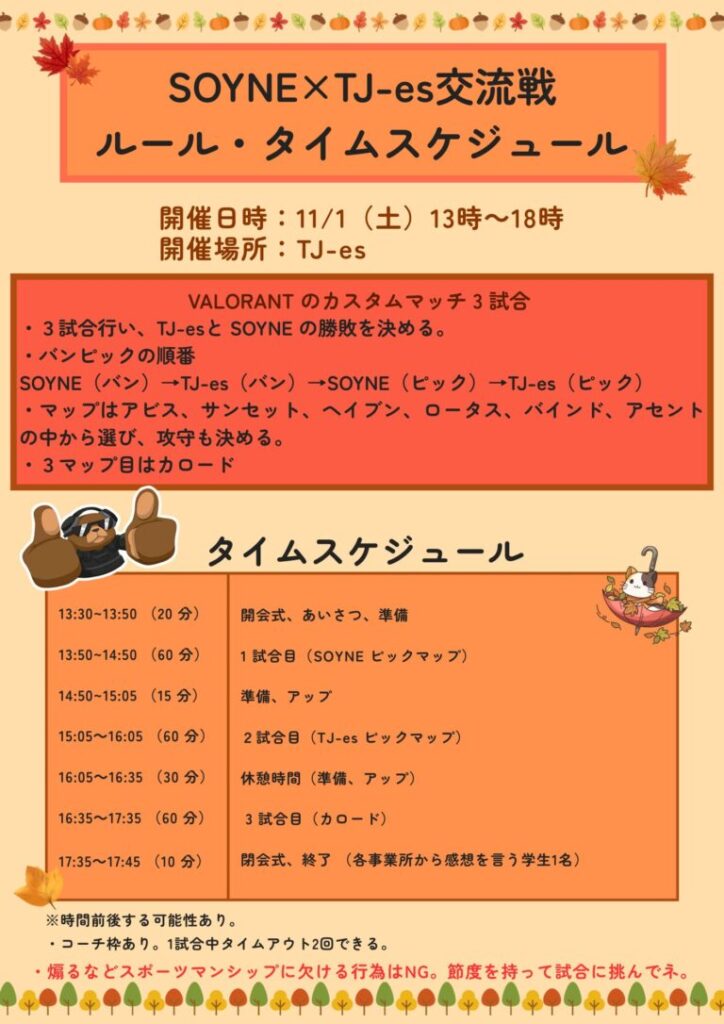 今週土曜、TJ-esではSOYNEとの VALORANT交流戦 を開催します。